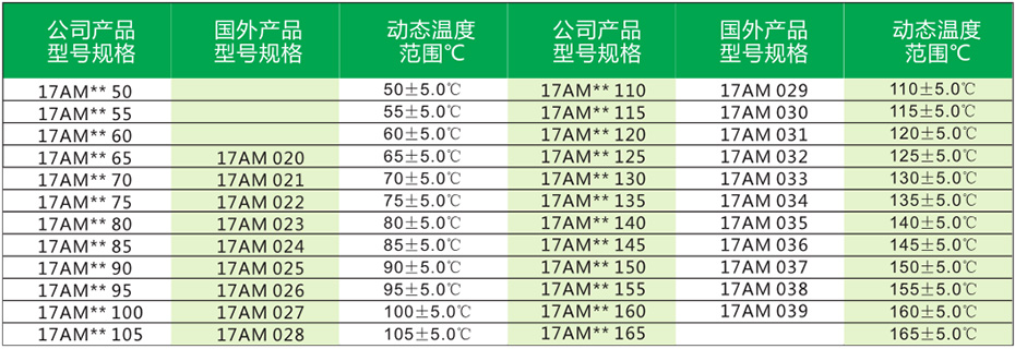17AM系列热保护器是一种具有对温度和电流双重感应特性的产品,该产品结构先进、体积小、 动作灵敏、触点容量大、寿命长的特点,广泛适用于分马力电机、电热器具、荧光灯镇流器、变压器、汽车 马达、集成电路及一般电气设备的过热、过电流保护。因带 PTC 而具有断电复位的功能。
