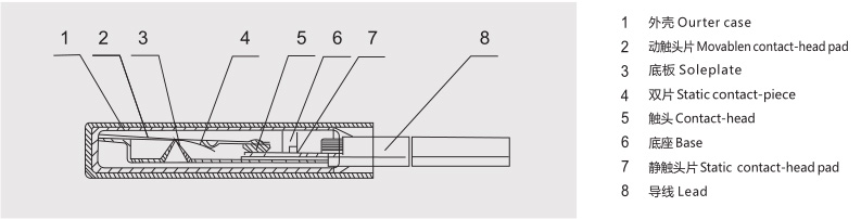 KWC型温度保护是由碟形高灵敏双金属元件、动触头、静触片、固定底板、外壳和耐温导线等组成。工作时双金属元 件处于自由状态,动触头与静触片闭合,电路导通。当使用电器因故发热,温度上升到该产品额定动作温度值时,双金 属 元 件 受 热 生 内 应 力 耐 迅 速 动 作,打 开 触 点切 断 电 源、电器停止工作,从而起到热保护作用。当装置冷却到安全工作温度时 触点自动闭合,电器恢复工作状态。该产品具有电阻小,感温快、无噪声、动作迅速、安全可靠等优点。